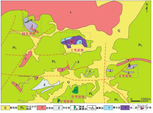 學(xué)者經(jīng)勘探分析認(rèn)為:II號(hào)巖體具有較好銅鎳的成礦條件,具有較大的找礦潛力。